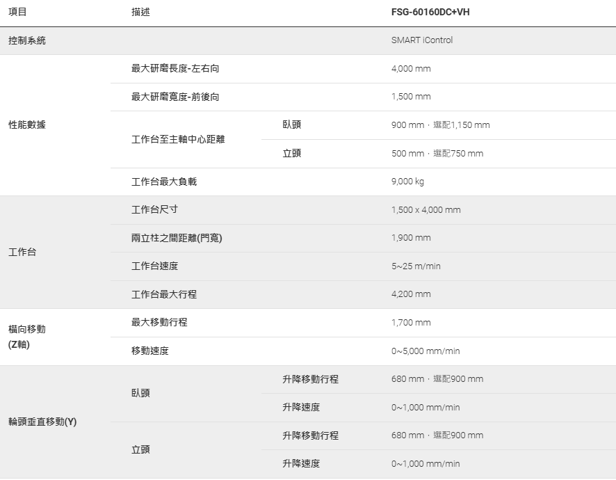 FSG-60DC+VH為本系列最大型的機種,標配我們獨家的SMART iControl人機對話程式介面數控系統,結合TaskLink研磨排程功能,使操作人員無需工程背景下,即可自己編寫程式,進行在一個加工循環內完成多個複雜的研磨工作。