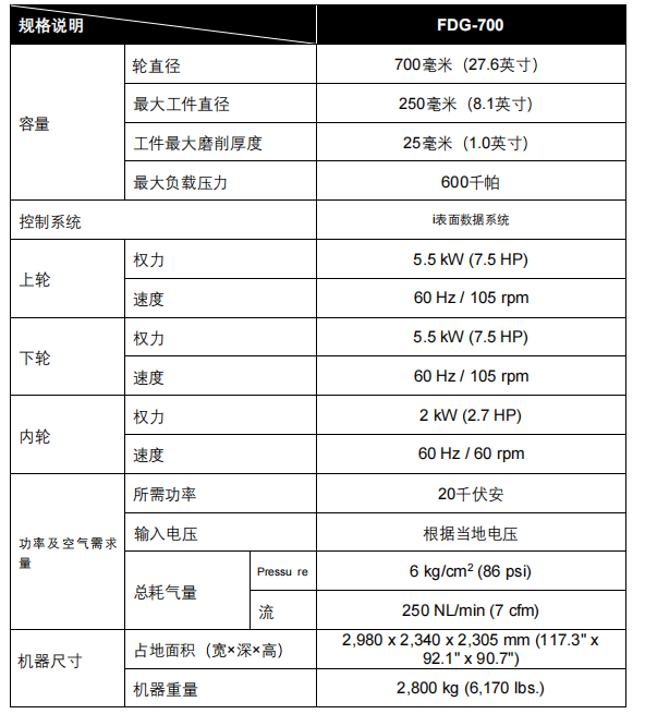 福裕双端面磨床FDG-700搭配八阶段的压力控制,非常适合需要高精度、高效能大批量生产的中小型工件。此精密研磨技术在平面度、平行度、表面光洁度与尺寸公差方面,具有相当的优越的表现。FDG-700搭配Chevalier所研发的iSurfaceDS控制器,能完整、简易地以对话式接口,作直觉性的操作。本机台的特色,具有高精度、数字控制的气压系统,能依选定的压力自动作调整。高精度的接触式量测系统,作为磨削高度的尺寸控制与砂轮修整监控。
