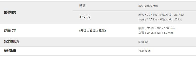 升降軌道與主軸座機構設計,含高負荷之四線方形導軌,提供絕佳的剛性及重切削輪磨加工能力。Y軸之硬軌表面硬化熱處理並經精密研磨,高寬度之導軌活動面貼附Turcite-B抗磨擦介質再施以手工鏟花,使主軸頭之運行更穩定平滑。