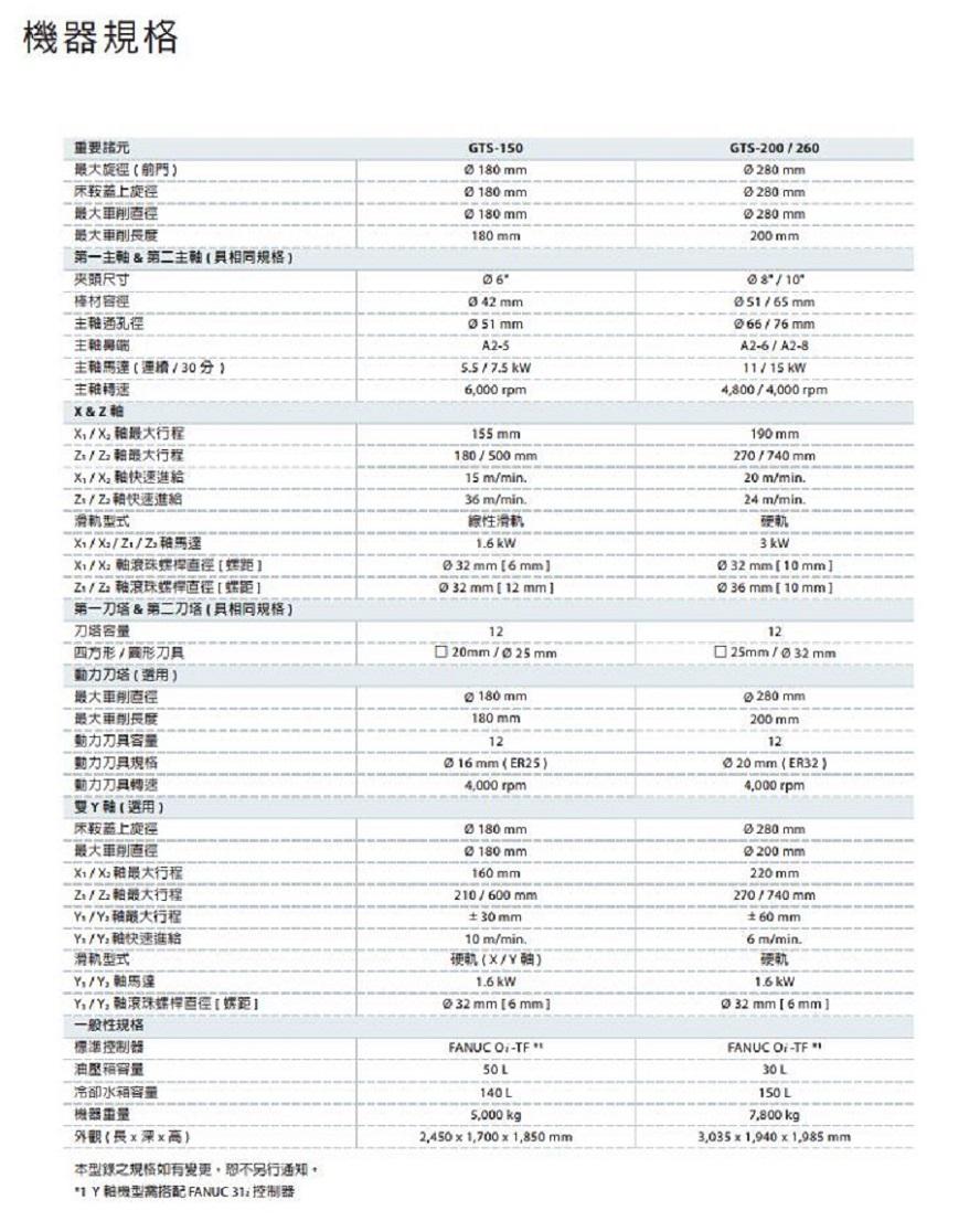程泰车床GTS 系列以二個工序於一台機台內同時完成為設計概念,除雙主軸、雙刀塔的先進結構外,可另外選配 C 軸、動力刀塔及 Y 軸,並且允許各刀塔同時間,各別切削兩工件,展現極高工作效率。